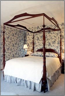 One of the most emblematic pieces of the Federal period is the four-post bed. Posts are reeded by hand and leaves are carved on the urn section. This bed is copied from a piece from Salem, MA.
